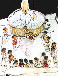 佐藤さとる全集には、カラーの挿し絵ページがあるのも魅力の一つ。