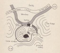 そう、左下あたりの矢印には注釈がない。上の地図には「小さな流れ」あるのだが。